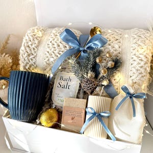 Christmas Hygge Gift Box with Blanket Mug Candle Socks Cozy Cute Self Care Gift Basket Christmas Care Package SPA gifts for Her Him