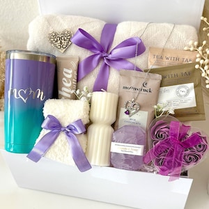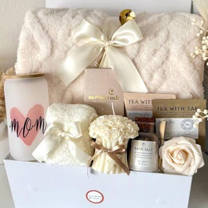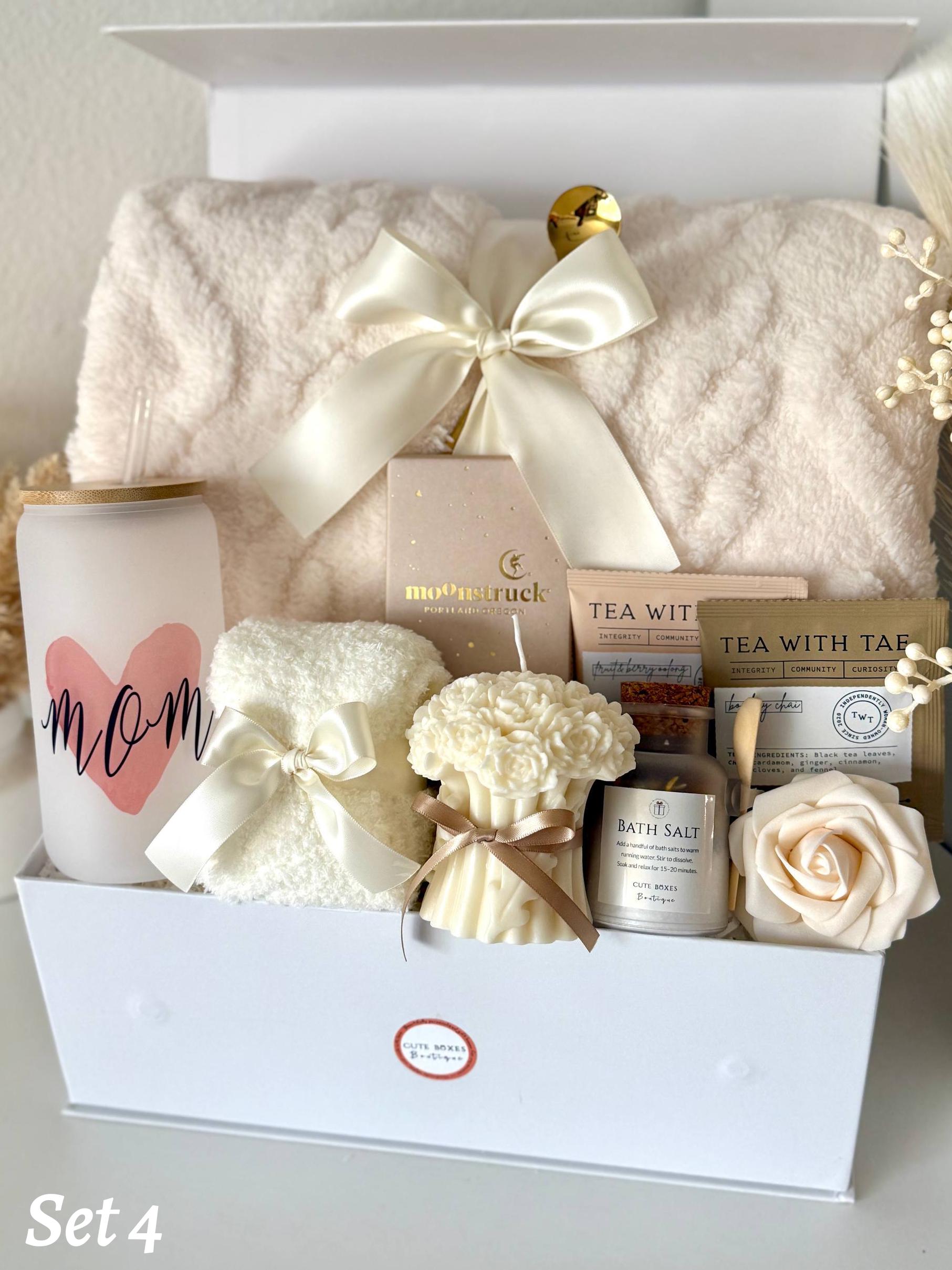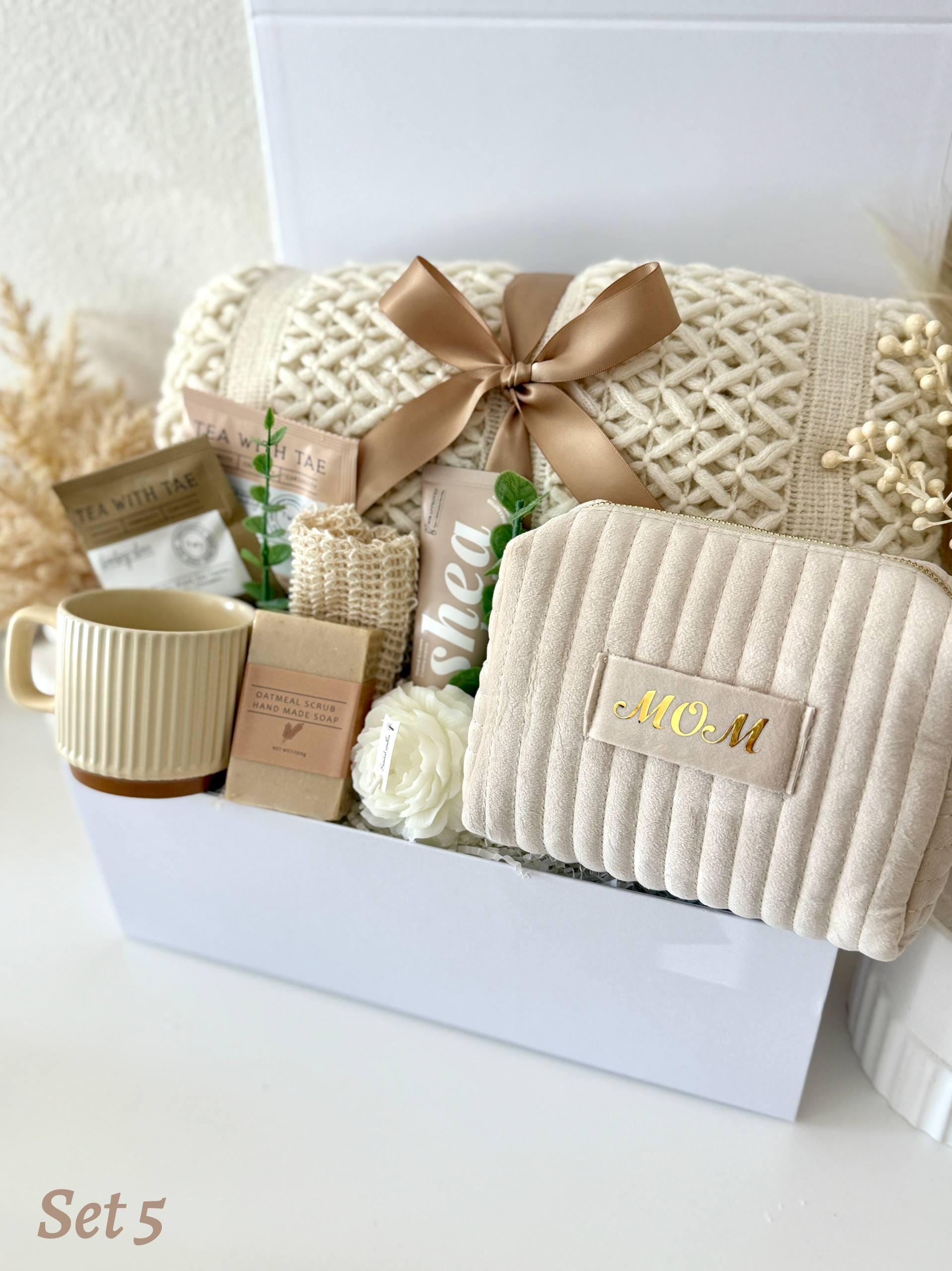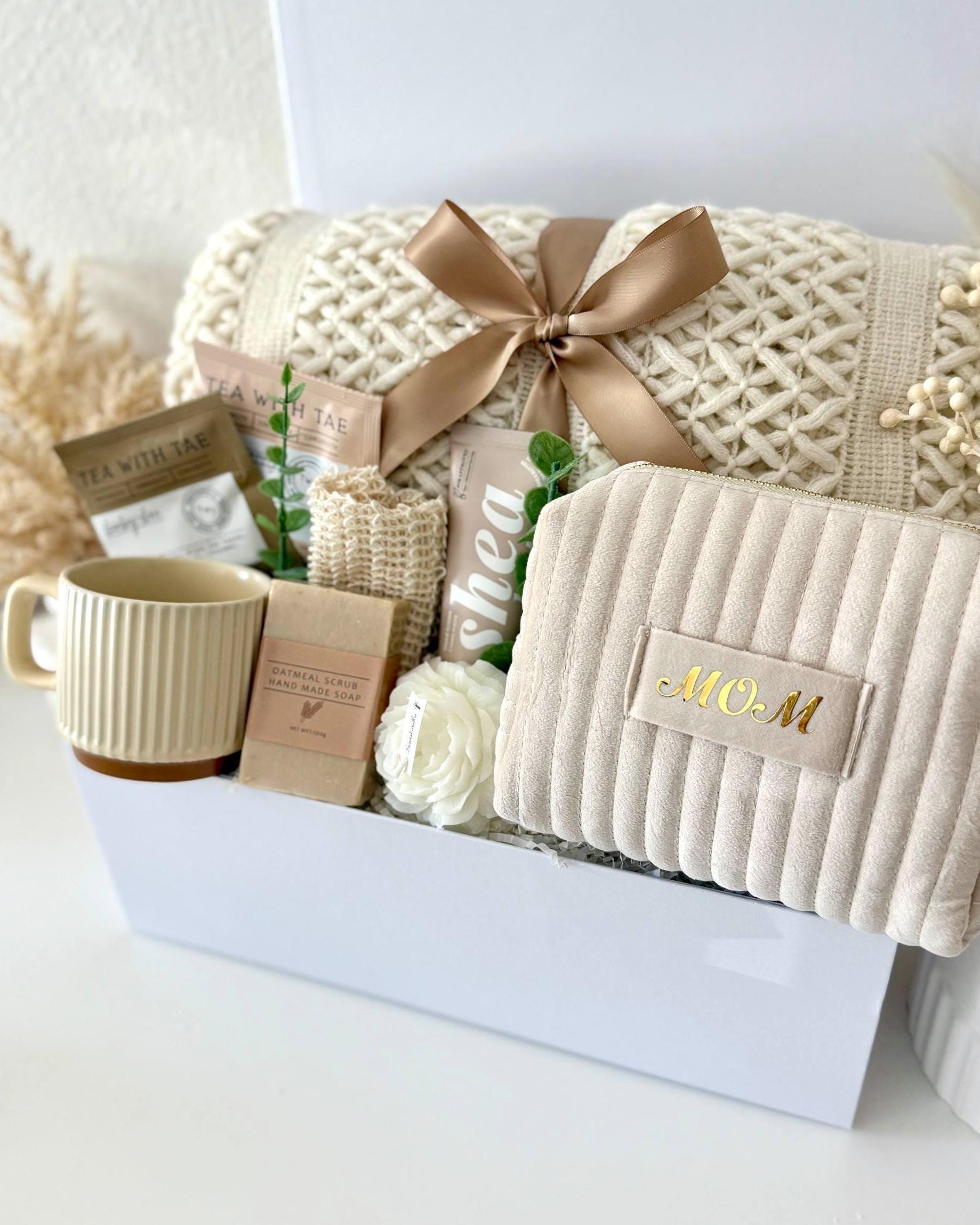 Mothers Day Gift Box, Happy Mothers Day Gift Basket, Cozy Gift Set for Mom, Blanket Candle Makeup Bag Handmade Soap Cup Mug